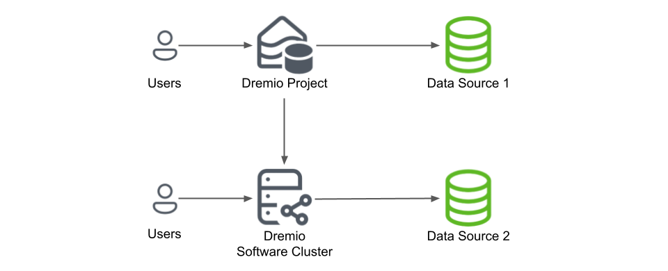 - Simplified data access – Access all data sources connected to Software clusters as schemas within Dremio without managing individual source connections.